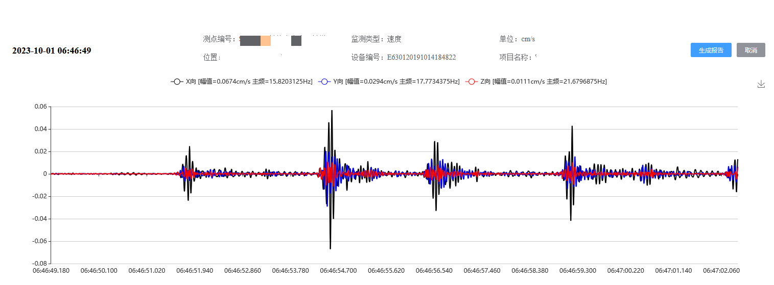 本次爆破監(jiān)測位于舟山市岱山縣,本項目通過對山體測振點位的健康在線監(jiān)測系統(tǒng),對爆破山體的計劃設(shè)計的合理性、施工質(zhì)量、工程的可靠性進行驗證,監(jiān)測在爆破情況下、對邊坡的影響。